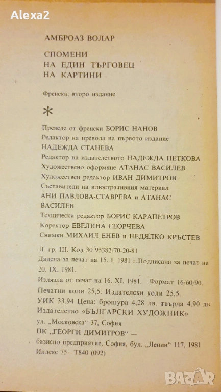 " Спомени на един търговец " - Амброаз Волар - 1981г., 338 стр., меки корици, идеално състояние.