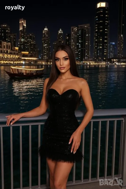 Къса парти рокля в черно от пайети с акцент от тюл → Обява 53528318