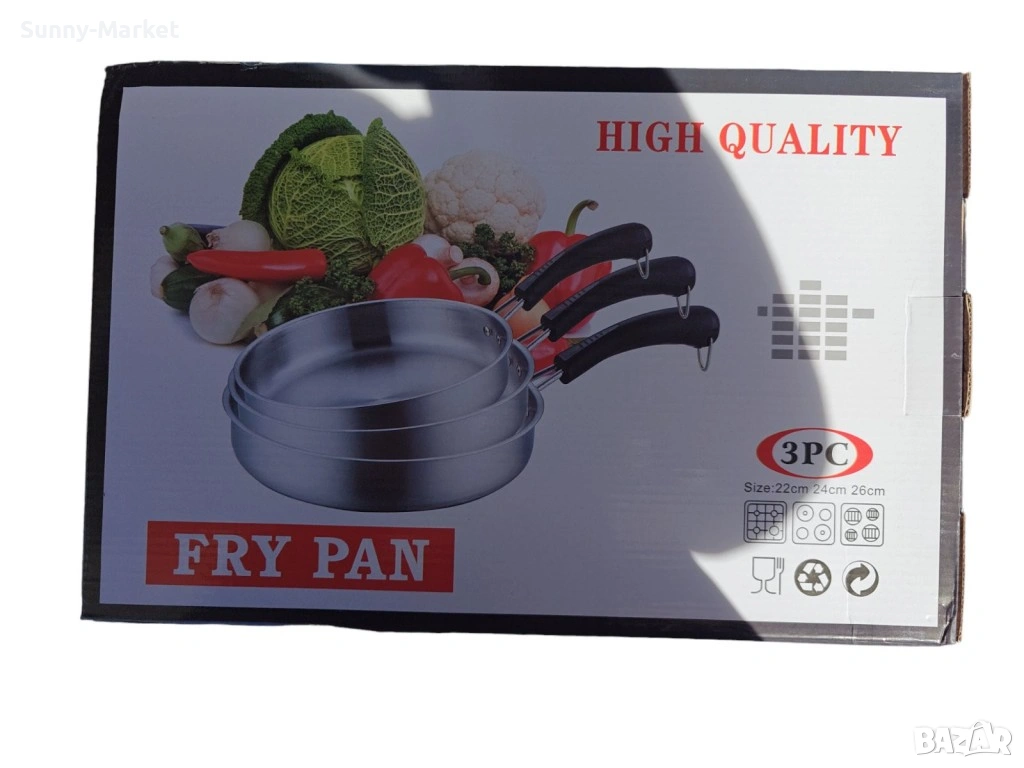 Супер здрави и качествени 3 броя тигани с дръжка 22/24/26 см.