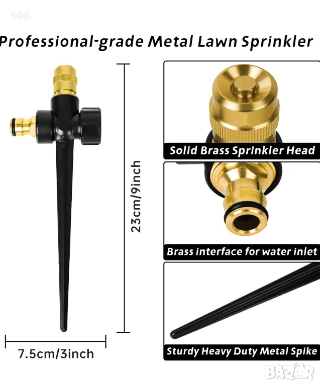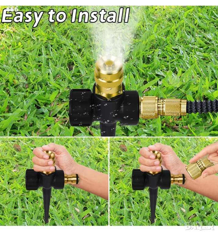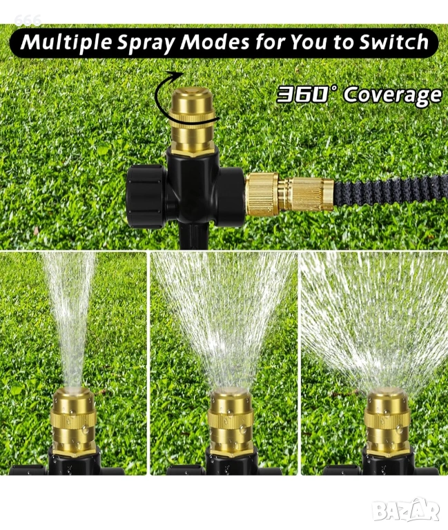 【Приложения】: Градинските пръскачки и устройствата за напояване на тревни площи са подходящи за повечето често срещани резбови връзки, идеални за пръскане на тревни площи, поливане на зеленчукови и овощни лехи, храсти, живи плетове, цветя и други зелени повърхности, където равномерното поливане е важно.