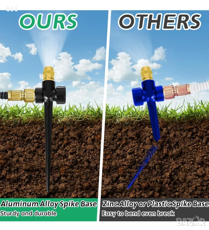 【Висококачествен материал】: Основата на този разпръсквач за тревни площи е изработена от издръжлива алуминиева сплав, а месинговата глава е устойчива на ръжда, корозия и износване. Металната конструкция е проектирана да издържа на износване, причинено от влага и сурови метеорологични условия, на които са изложени повечето импулсни разпръсквачи.
