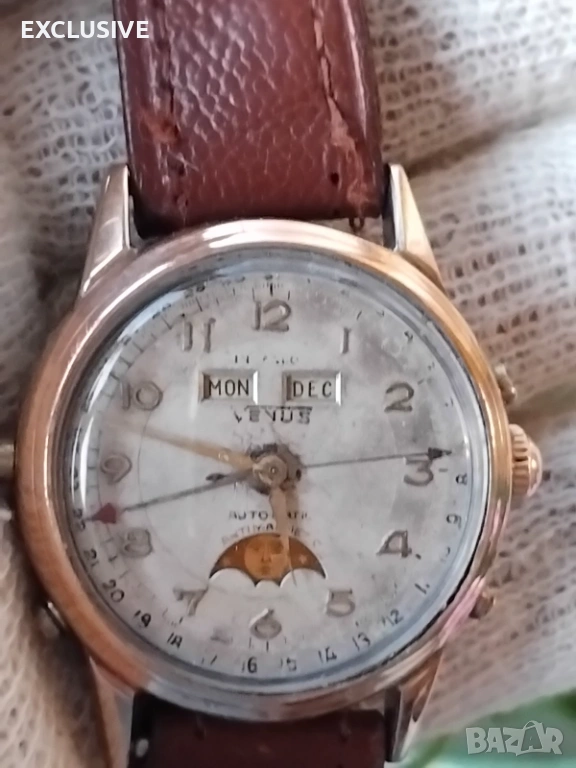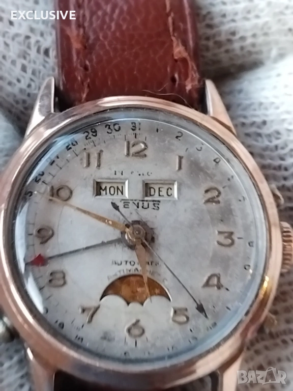 Рядак колекционерски хронограф Venus, автоматик, ден, месец, дата, лунна фаза на 31 дена пълно завъртане!