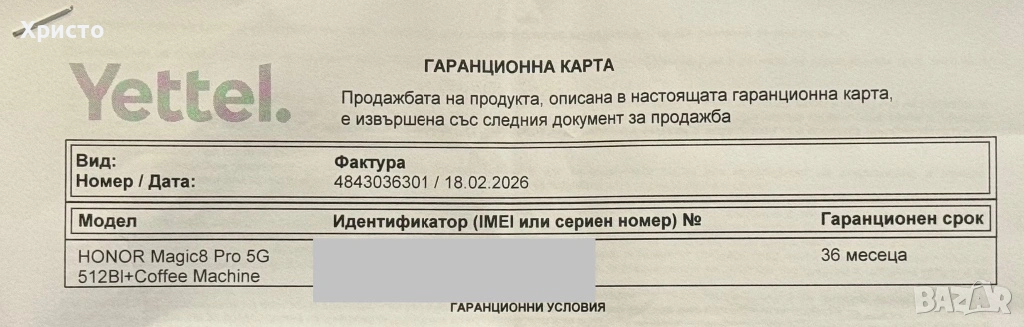 Чисто нов, неразпечатан HONOR Magic8 Pro. Телефонът е закупен на 18/02/2026 г. и е с пълна 36 месеца гаранция. Устройството никога не е активирано и не е използвано. Работи с всички оператори. Модел от висок клас с премиум изработка, модерен дизайн и флагманско представяне. Подходящ както за лична употреба, така и за подарък. Получавате абсолютно ново устройство с гаранция и спокойствие при покупката. Без бартери!!!