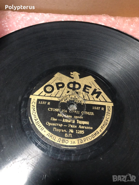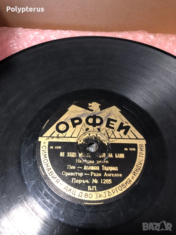 Стара българска шеллакова плоча, снимка 1 - Грамофонни плочи - 53529065 Стара българска шеллакова плоча, снимка 2 - Грамофонни плочи - 53529065 1/2