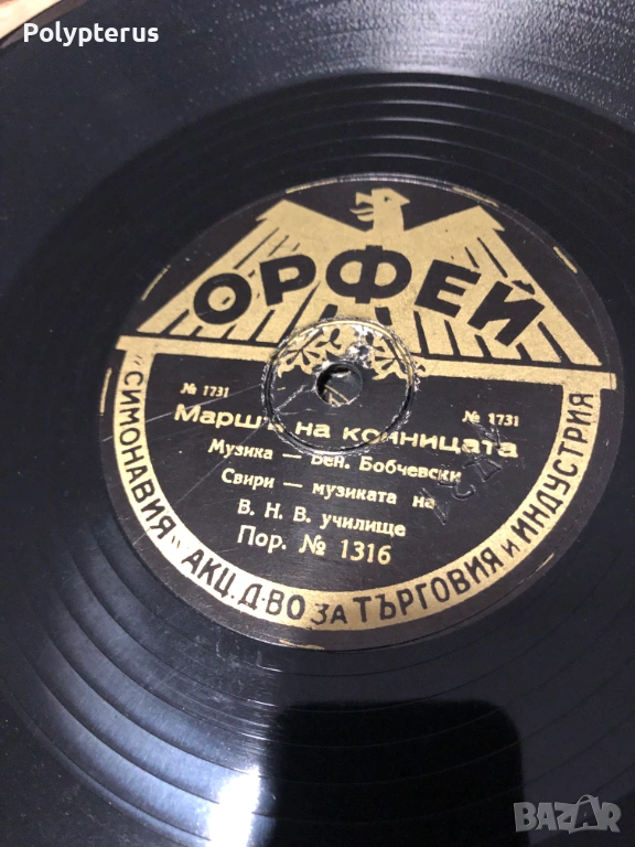 Стара българска шеллакова плоча, снимка 1 - Грамофонни плочи - 53529076 Стара българска шеллакова плоча, снимка 2 - Грамофонни плочи - 53529076 1/2
