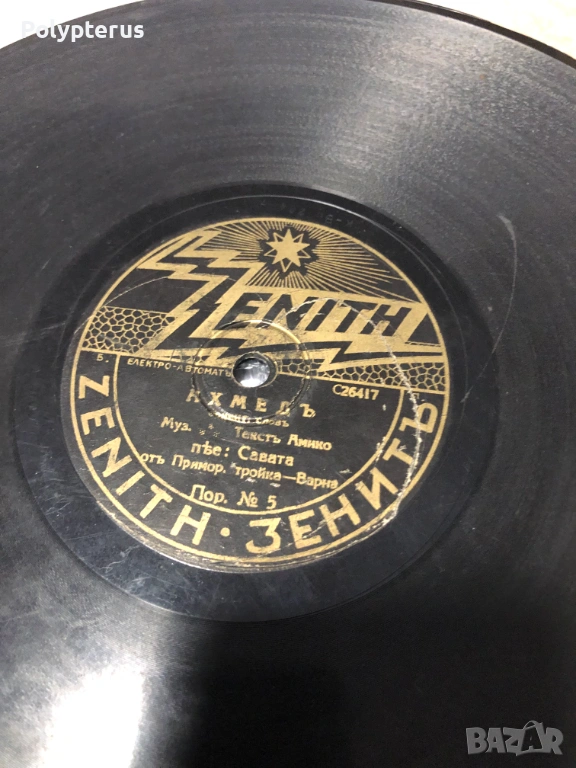 Стара българска шеллакова плоча, снимка 1 - Грамофонни плочи - 53529097 Стара българска шеллакова плоча, снимка 2 - Грамофонни плочи - 53529097 1/2