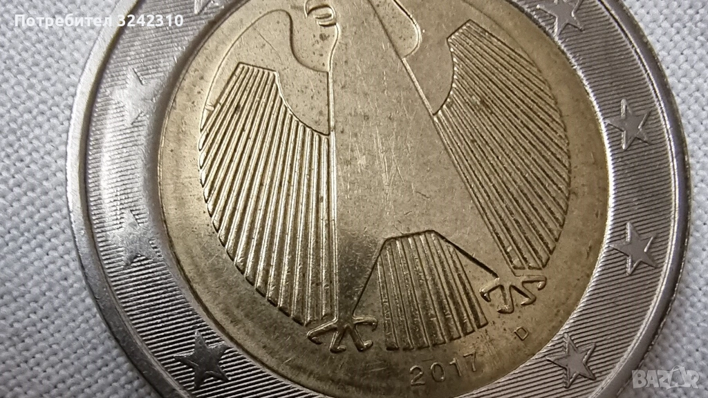 .Предлагам немска монета от 2 евро от 2017 г. с грешка при сечене. Интересен колекционерски артикул за нумизматични ентусиасти. Такива грешки при сечене са рядкост. Моля, вижте снимките за подробности. Разгледайте и другите ми обяви! Приятно разглеждане! Частна продажба, следователно без гаранция или връщане.