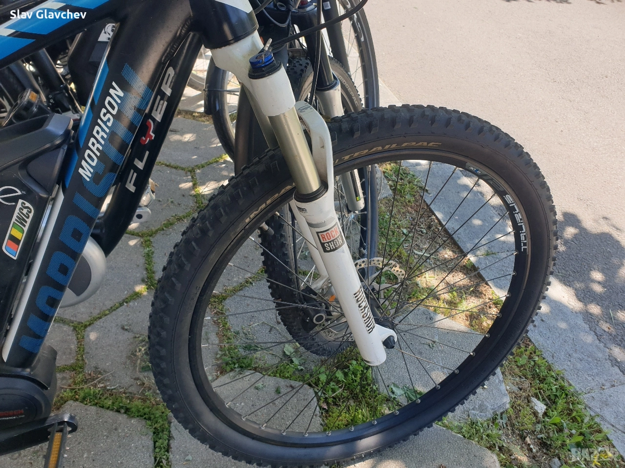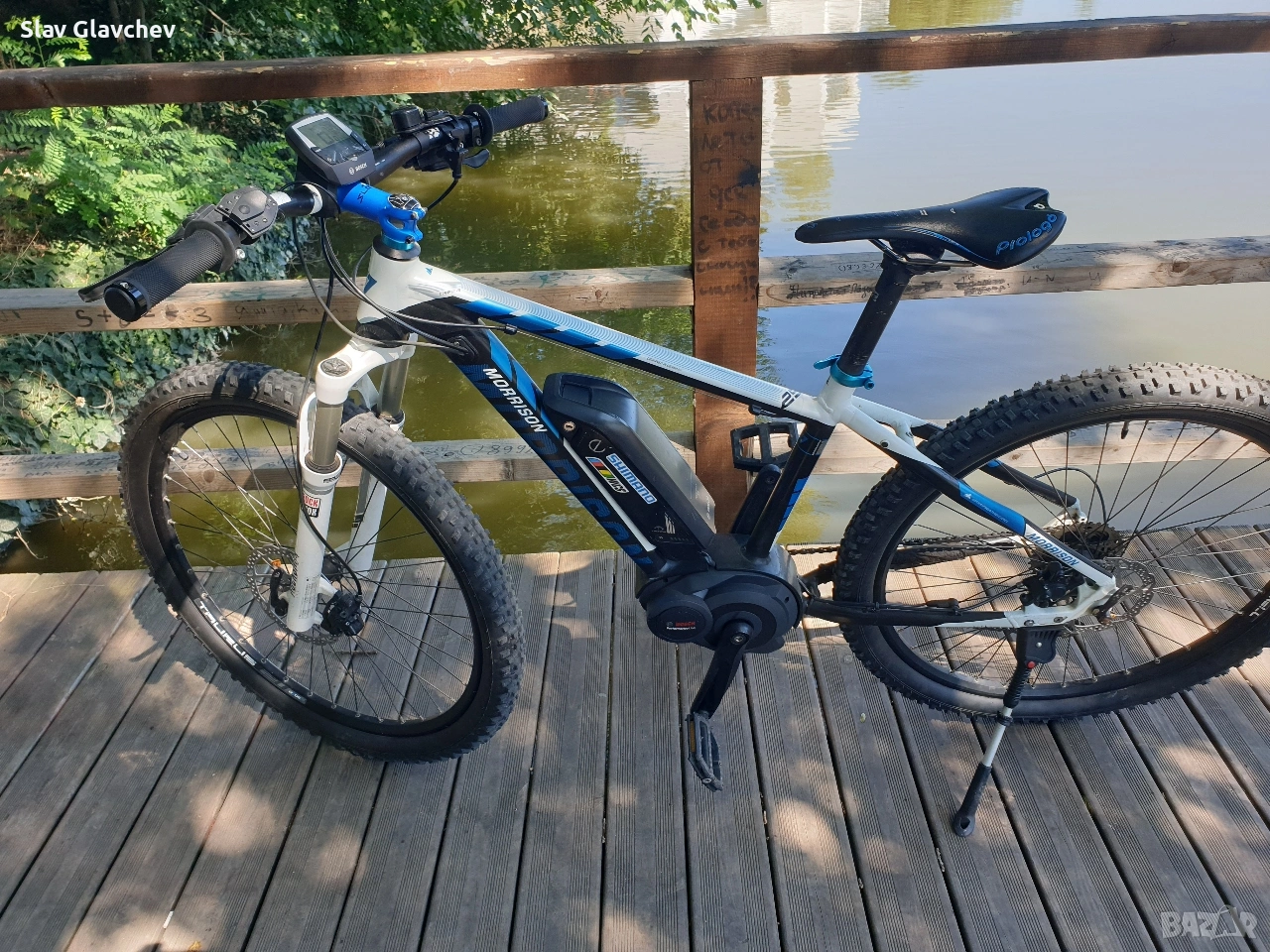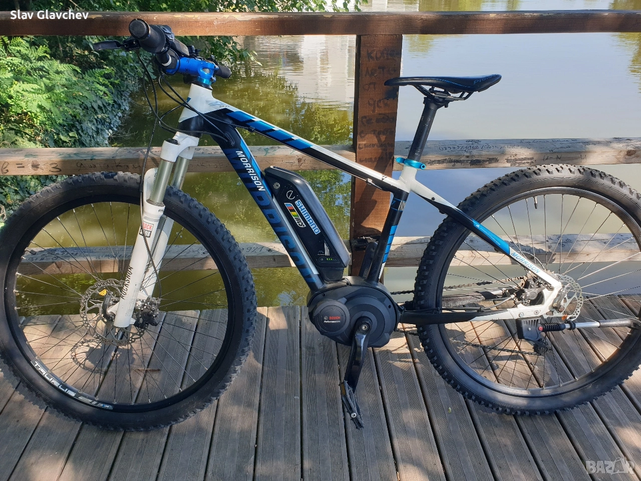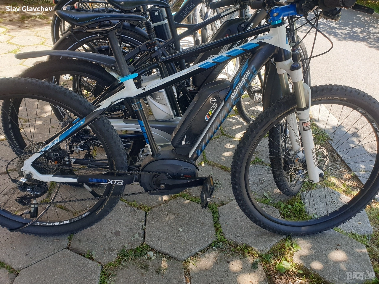 Продавам електрически велосипед Morrison 27,5" цола c двигател BOSCH Perfomance оборудване висок клас SHIMANO DEORE XT 10 скорости заключваща от кормилото вилка ROCKSHOX R с оригинално зарядно и ключове за батерията.