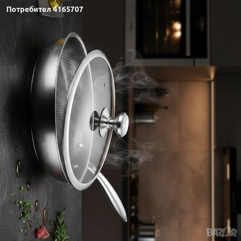 Тиган с капак Goldmann Fusionhex Pro, Дълбок, Незалепващо Покритие, Неръждаема стомана → Обява 53529477