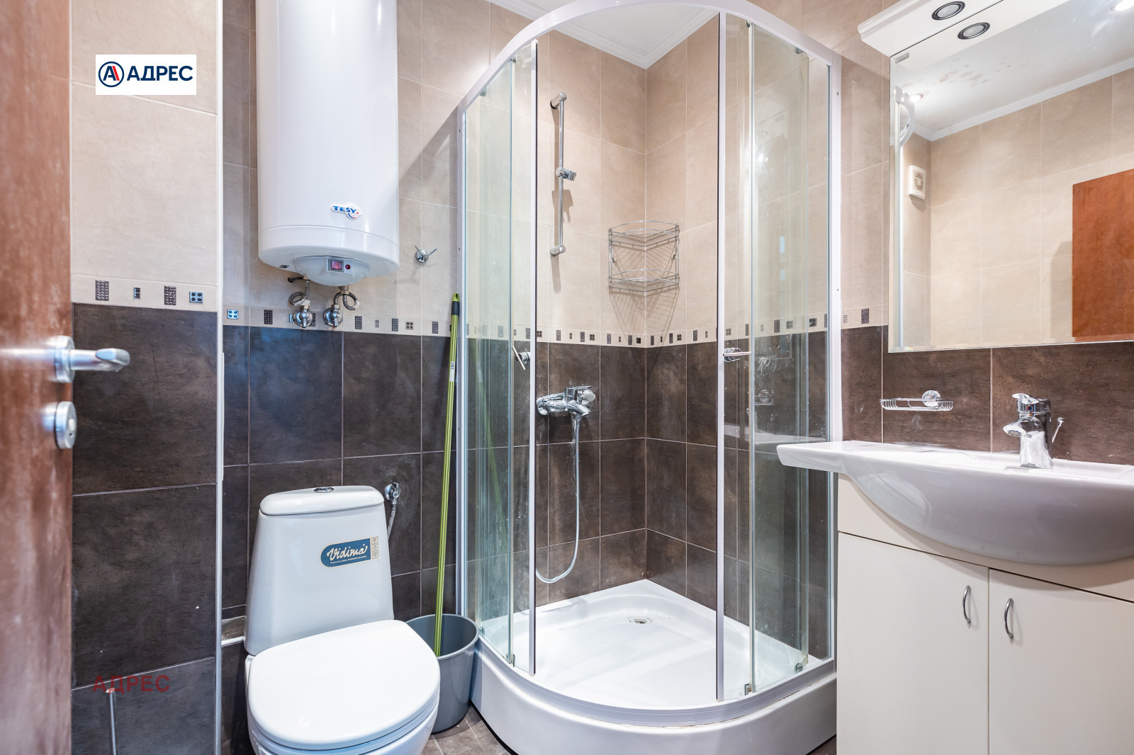Включва просторно климатизирано помещение, две обособени стаи, едната от които климатизирана, мокро помещение с баня, тоалетна, душ кабина и тоалетка, голямо антре.