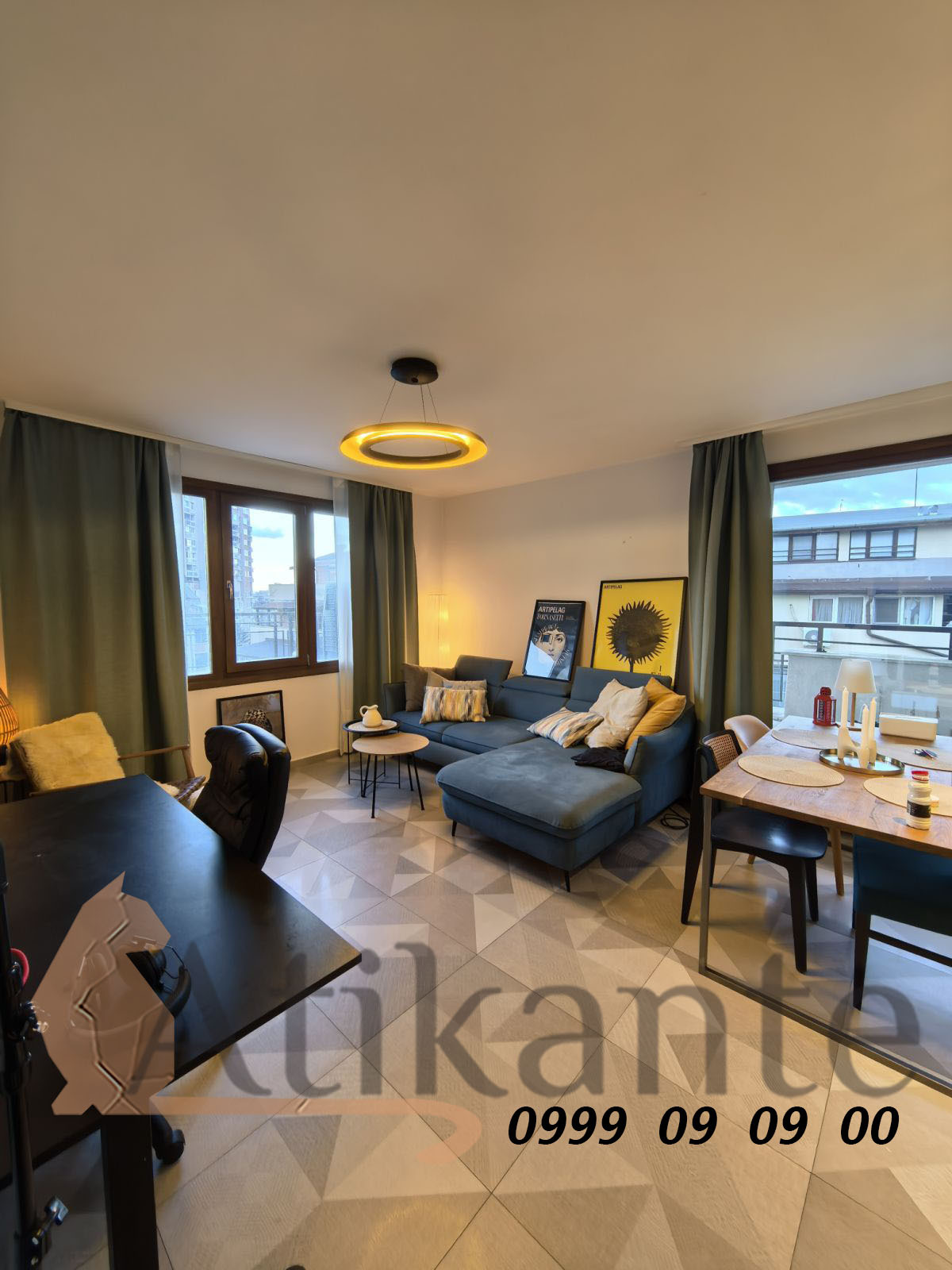 Atikante Estates presents a luxury apartment located on Todor Kableshkov Blvd., directly opposite Kaufland. The apartment is in a SAG Engineering building, with luxurious common areas and an inner courtyard with garages. We offer an option to rent a separate ground floor garage for an additional 250 leva. Currently, the apartment is a two-room apartment, with another room, which is used as a dressing room. But if necessary, it can change its purpose and become a small children's room or office. The furniture in the apartment is high-class. Swedish gas installation with double fuse and alarm system. Large panoramic terrace. The apartment accepts foreigners and an address registration is issued. The location is extremely suitable for medical students, due to the quick access by Tram number 7 and Trolleybuses 2 and 9 to the Medical University.