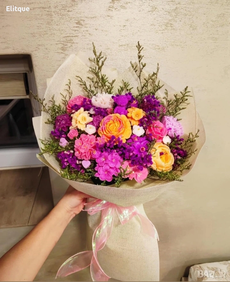 🌸 Сапунен букет – стилен и дълготраен подарък Искате красив букет, който не увяхва след няколко дни? Сапуненият букет е нежна и практична алтернатива на живите цветя. ✨ Изработка по индивидуален дизайн ✨ Избор на цветове и аранжировка ✨ Подходящ за рожден ден, имен ден, годишнина или специален повод ✨ Ръчна изработка с внимание към детайла Ефектен подарък, който впечатлява още при поднасянето и остава като спомен. За кого бихте избрали такъв букет? И нека сме честни… не е ли хубаво цветята да издържат повече от една седмица? 😉🌸