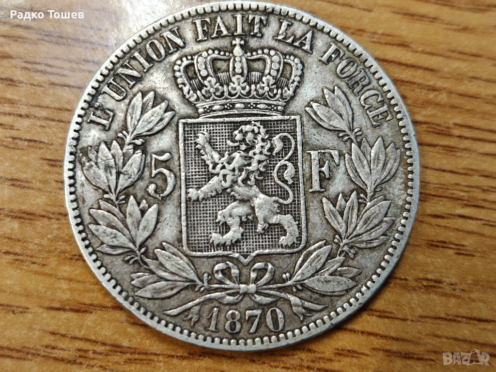 Белгия 5 франка 1870 СРЕБРО → Обява 53529890