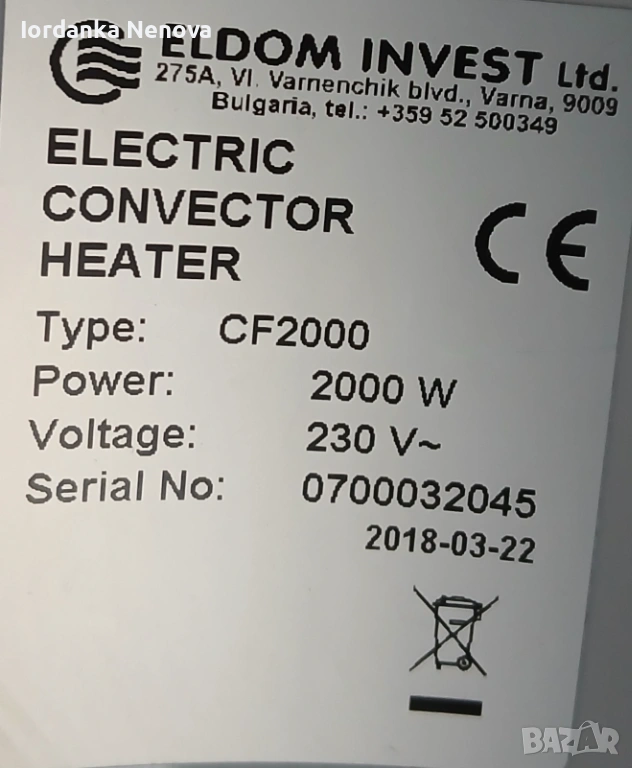 Конвекторна печка , снимка 1 - Отоплителни печки - 53530031 Конвекторна печка , снимка 2 - Отоплителни печки - 53530031 Конвекторна печка , снимка 3 - Отоплителни печки - 53530031 Конвекторна печка , снимка 4 - Отоплителни печки - 53530031 Конвекторна печка , снимка 5 - Отоплителни печки - 53530031 1/5