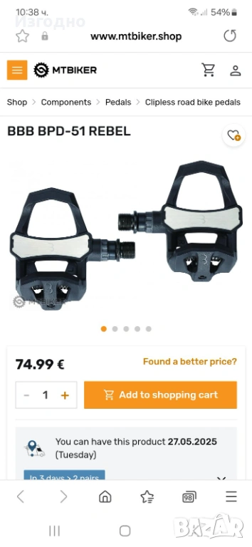 - Педали BBB Rebel (купувани специално за модела - заводското оборудване, като колче и кормило са на марката BBB;
