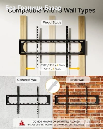 Подходяща за големи екрани (LED/OLED/LCD) и популярни марки (Samsung, LG, TCL, Hisense и др.)