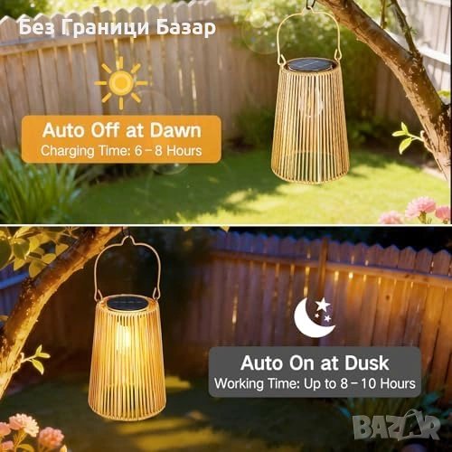 Нови Декоративни соларни лампи 2 броя ратан, за градина/пътека/патио