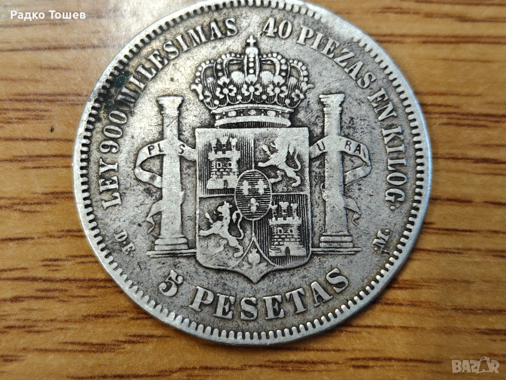 Испания 5 песети 1875 СРЕБРО, снимка 1 - Нумизматика и бонистика - 53530125 Испания 5 песети 1875 СРЕБРО, снимка 2 - Нумизматика и бонистика - 53530125 1/2