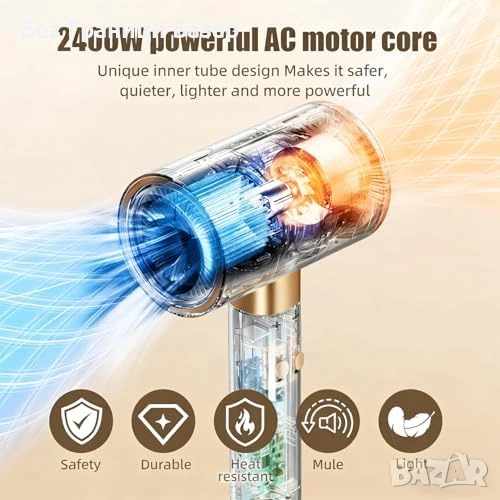 Мощен мотор 2400W за силен и равномерен въздушен поток и по-бързо сушене