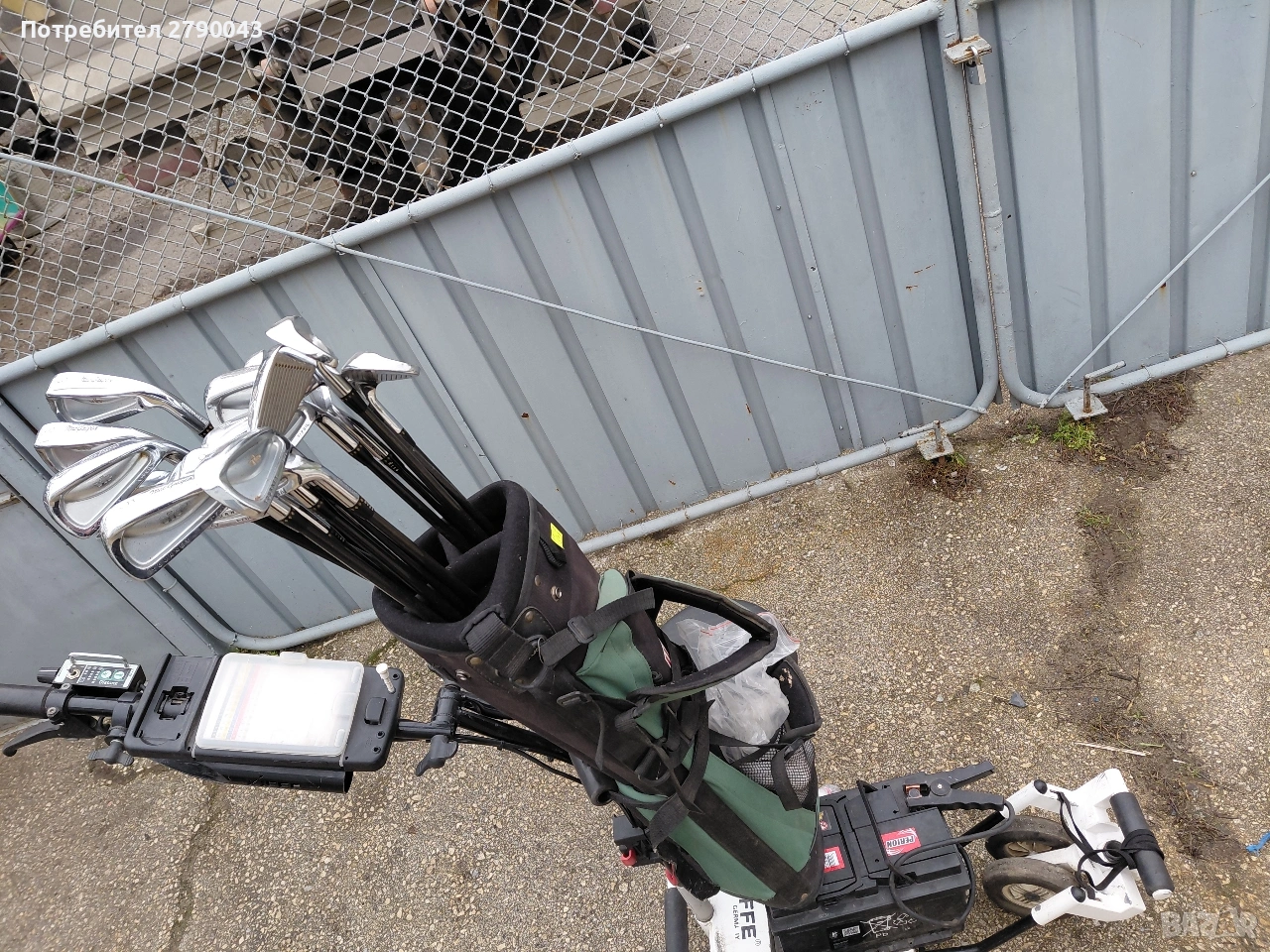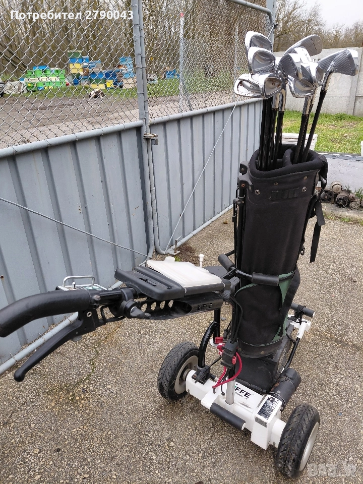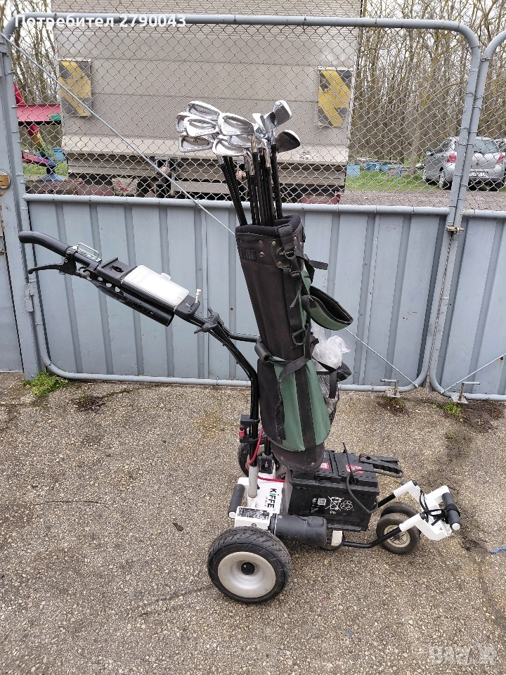 Продавам 12 волтова немска голф количка.Работи на две скорости.Акомулаторът беше за за смяна (12 v-35 ah)Изпробвал съм я и работи отлично. Към нея има оригинално зарядно.Ако желаете и комплекта със стикове и топчета цената му е 80 €.Внос.За повече информация моля само по телефона.