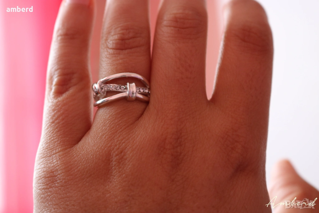 Много красив пръстен, изработен от сребро проба 925 и 15 бели циркони.
