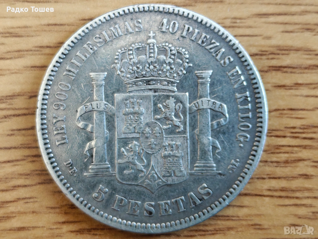 Испания 5 песети 1876 СРЕБРО → Обява 53530448