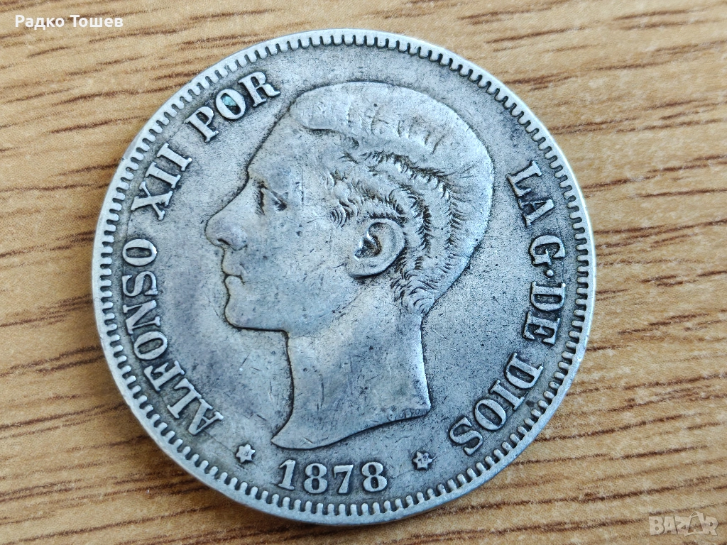 Испания 5 песети 1878 СРЕБРО → Обява 53530554