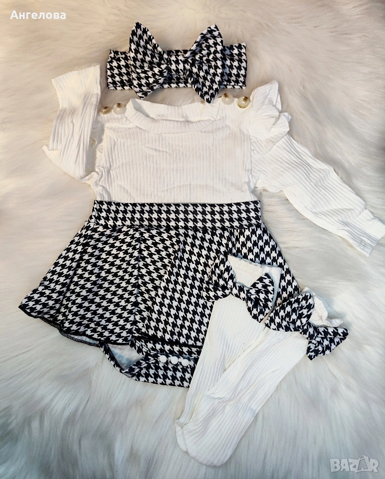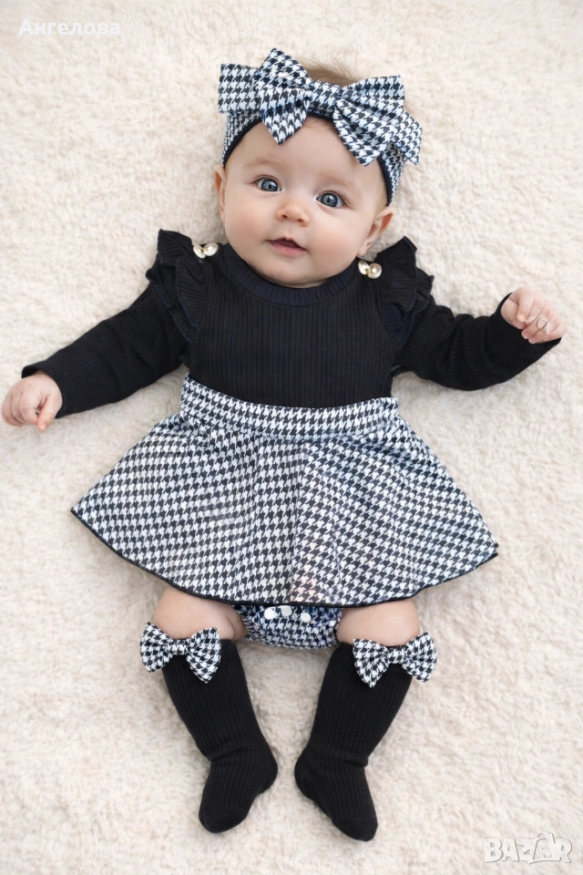 Бебешко боди-рокличка с лента за глава и чорапки → Обява 53530698