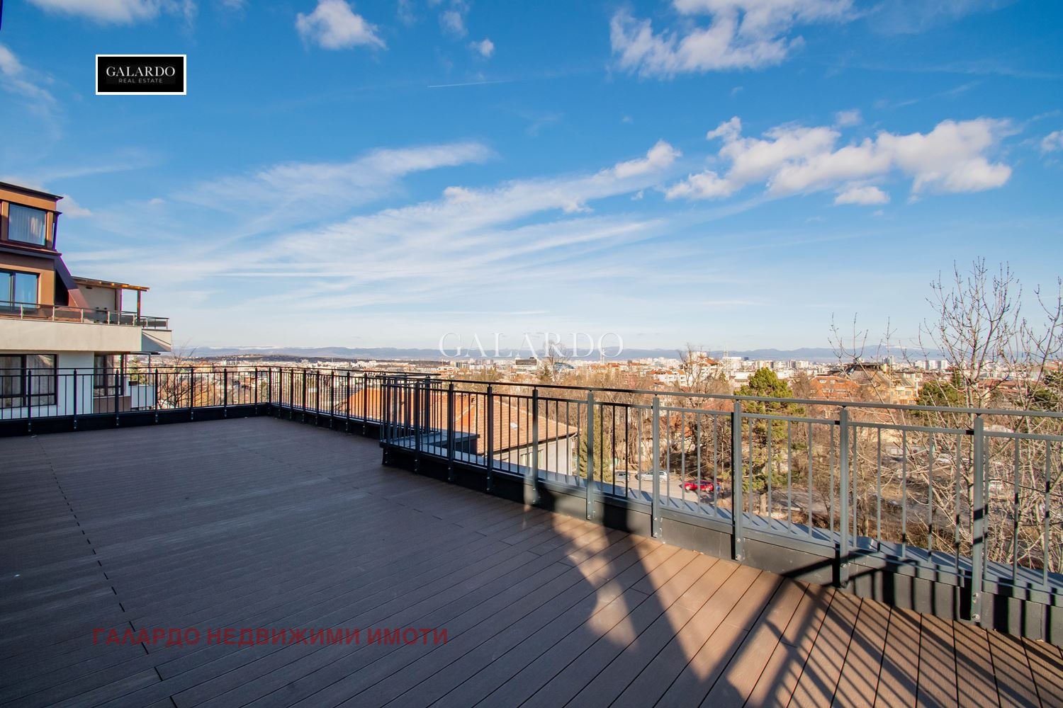 Galardo Real Estate представя четиристаен апартамент за продажба в малка бутикова сграда с Акт 16. Имотът е с френски прозорци, слънчев и с уникални гледки. Отоплението на апартамента е решено с подово отопление на газ. Имотът разполага с тераса около апартамента с квадратура 75 кв.м., която позволява да се наслаждавате на прекрасна гледка. Дограмата е висок клас. Сградата е свързана с канализация. Височина на таваните 2,73 м.