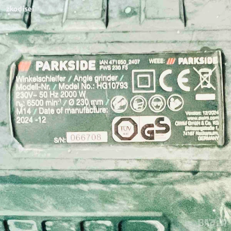 Ъглошлайф PARKSIDE PWS 230 F5 → Обява 53530952