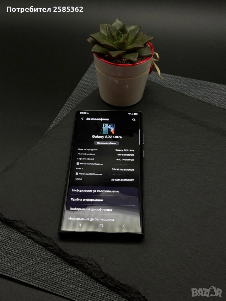 Samsung GalaxyS22 Ultra 256 Gb (Green). Устройството е фабрично отключено към всички оператори и е без никакви акаунти.