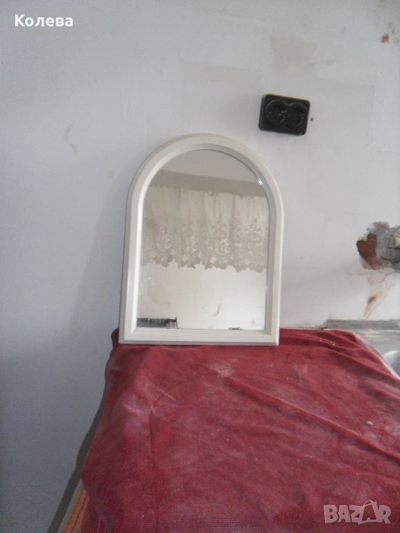 Продавам пластмасово огледало за баня ,може и на други места да се сложи етажерка за козметика за баня Размерите на огледалото са височина 46 см.,широчина-35 см. Размерите на етажерката са височина 50 см. ,широчина 28 см. Двете общо струват 10 евро.Поотделно по 5 евро