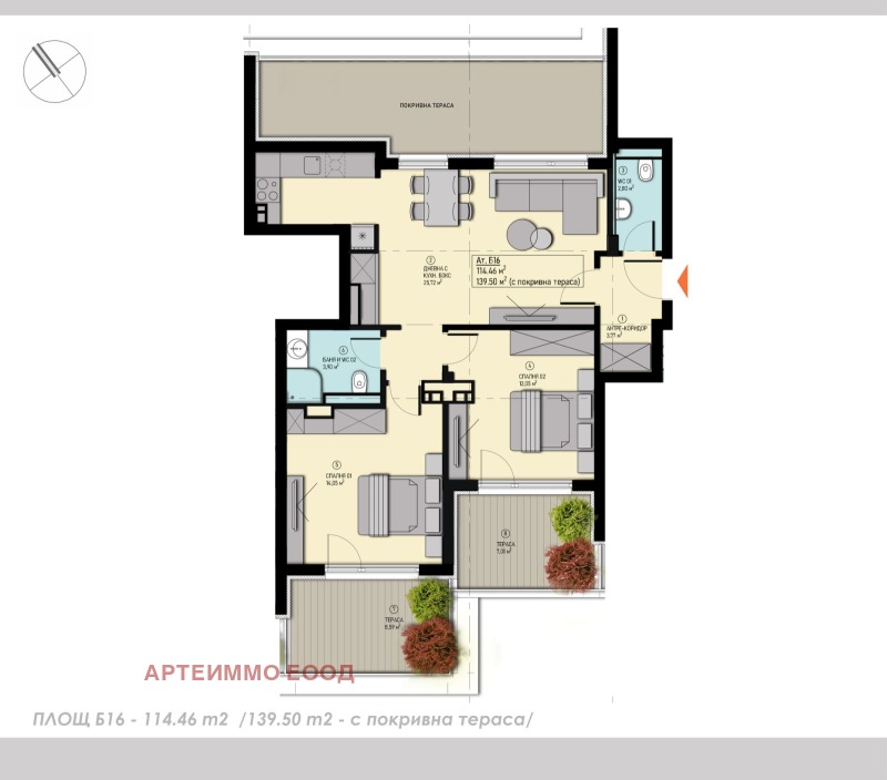 Покривна тераса: общата площ достига 139,50 кв.м