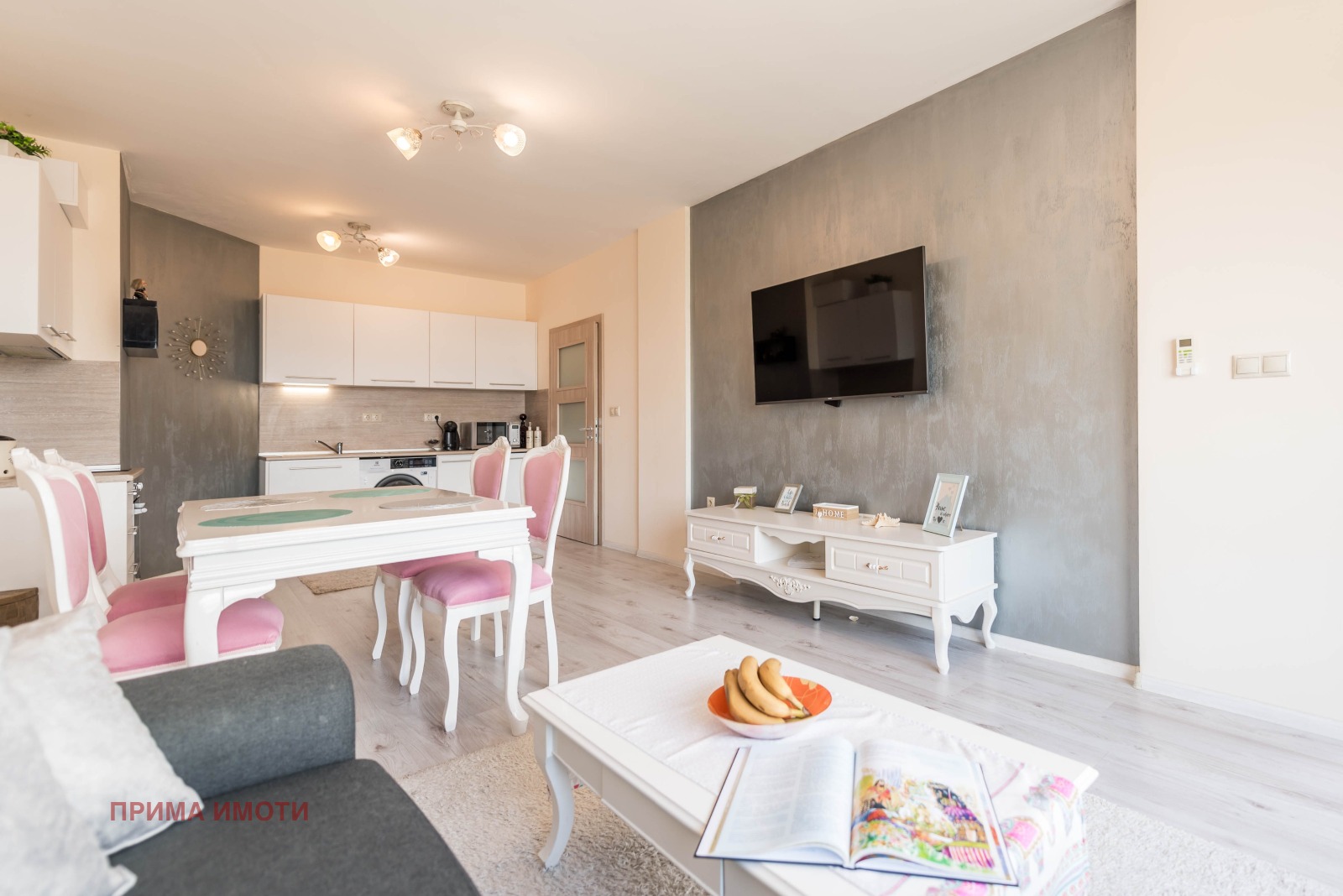 ФРОНТАЛНА НЕСКРИЕВАЕМА МОРСКА ПАНОРАМА! ПЪРВА ЛИНИЯ ДО МОРЕТО! ПРИМА ИМОТИ ОТДАВА ПОД НАЕМ ЛУКСОЗЕН АПАРТАМЕНТ, който се намира в затворен комплекс-Varna South Bay Beach Residence с прекрасна морска панорама на метри от плажната ивица. Разполага също със спалня, всекидневна с разтегателен диван+напълно оборудвана кухня - фурна с котлони, хладилник, пералня със сушилня, два смарт телевизора. Имота е обзаведен и оборудван с всичко необходимо за едно домакинство. Затворен комплекс с басейни, сладкарница, магазини.Свободно паркиране.