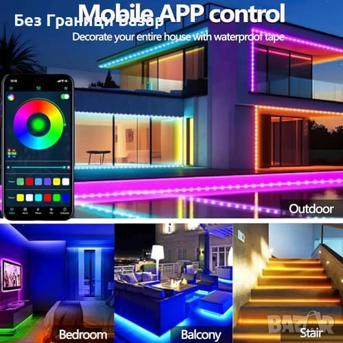Нова Външна LED лента 5m IP68 USB 5V музикален режим таймер APP RF