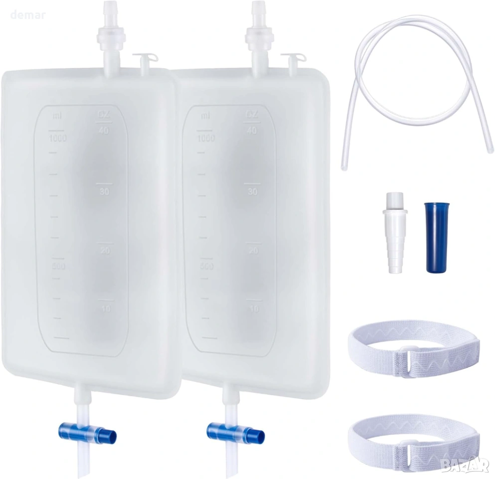 2 бр. торбички за катетър, за многократна употреба за урина, 1000 мл