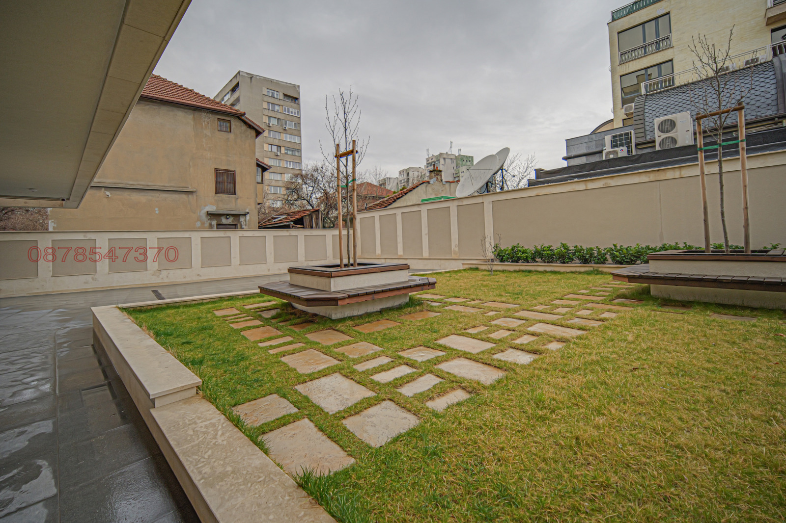 Има просторна тераса около офиса.