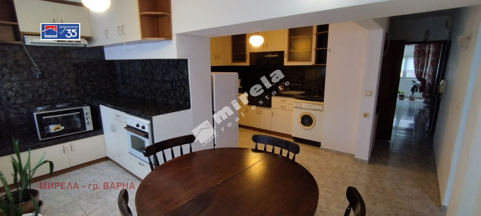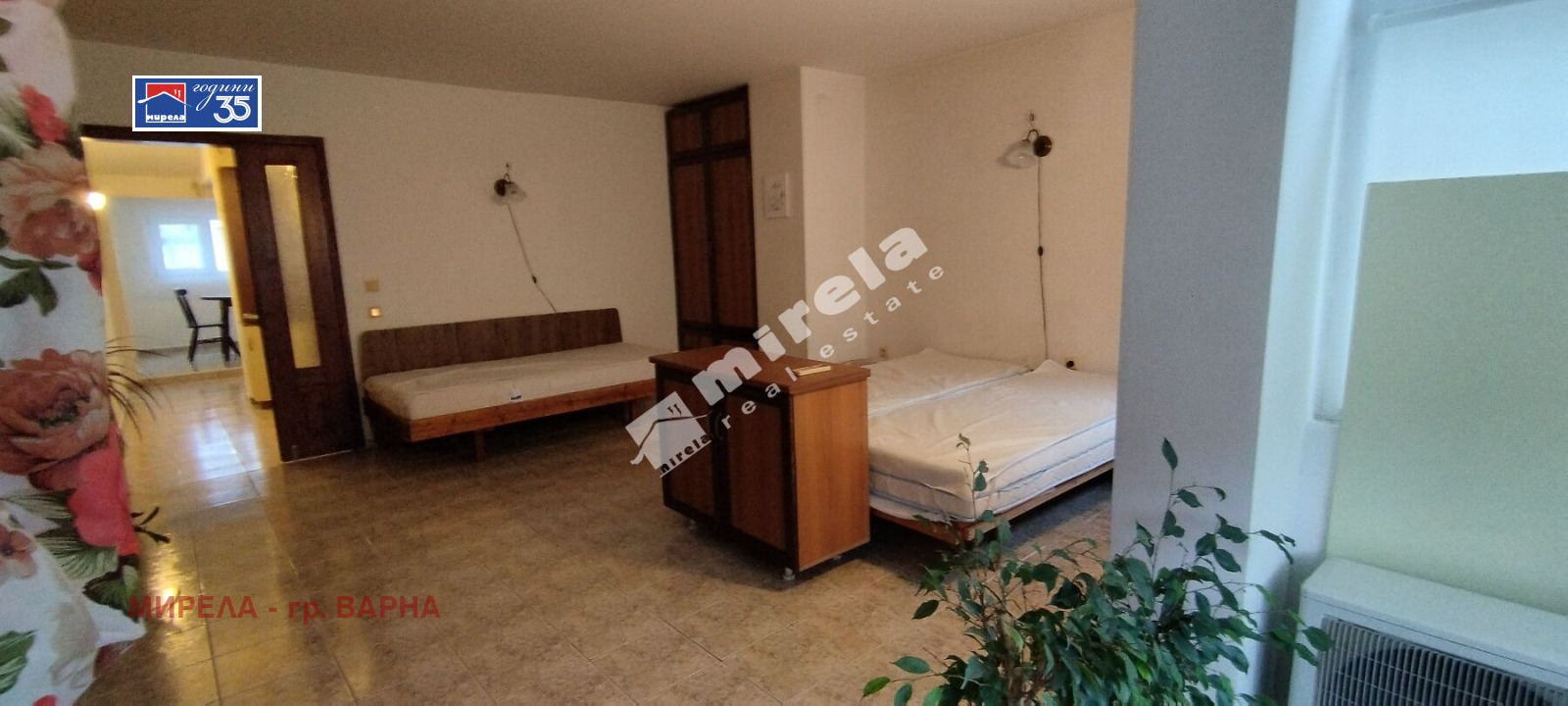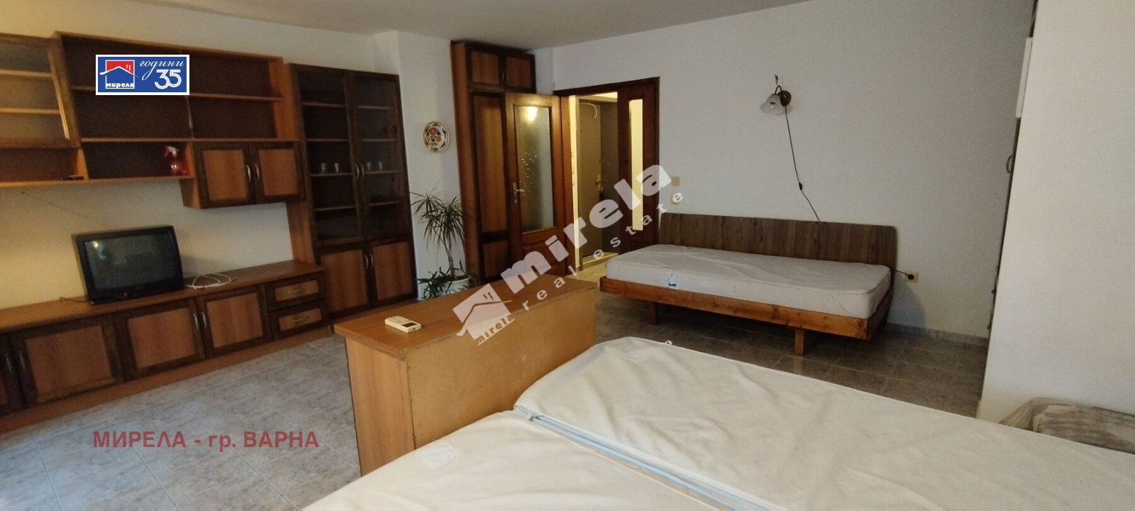 РАЗПРЕДЕЛЕНИЕ: всекидневна, обособена като спалня, втора спалня, кухня с трапезария, коридор и баня с тоалетна.