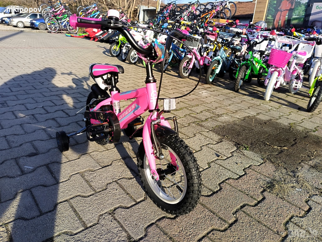 *Детският велосипед на Omega е един прекрасен избор за децата между 2 и 4-годишна възраст и височина от 80 до 100см. Може да се използва от деца, които още не са се научили да карат без помощни колела. Рамката е метална. Велосипедът е с алуминиеви капли и алуминиев държач на кормилото. Разполага с предна и задна V-brake спирачка, пластмасови калници и предпазител на веригата.