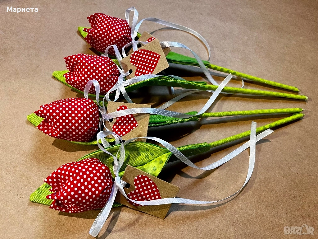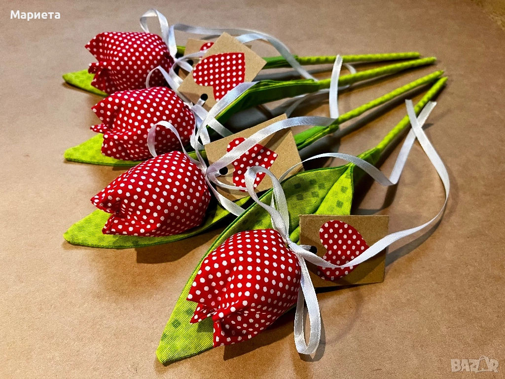 Текстилни лалета с картичка и панделка Лалета от плат , снимка 1 - Декорация за дома - 53531675 Текстилни лалета с картичка и панделка Лалета от плат , снимка 2 - Декорация за дома - 53531675 Текстилни лалета с картичка и панделка Лалета от плат , снимка 3 - Декорация за дома - 53531675 1/3