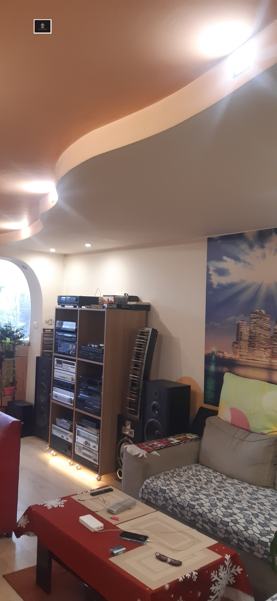 С това си фунционално разпределение,може да бъде разделен на едностаен апартамент(хол с бокс към него )и отделно друг двустаен ,който би се състоял от две спални,кухня с трапезария и баня с вана!