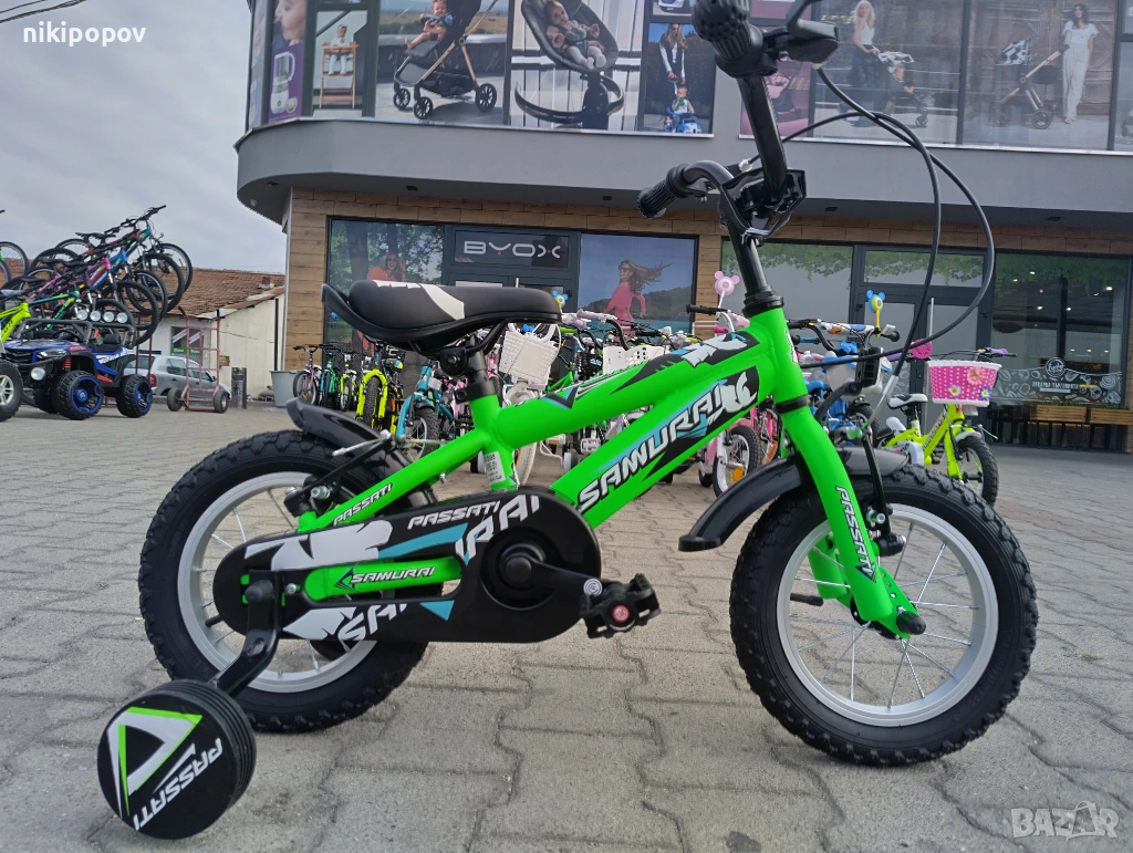 *Детският велосипед на Passati е един прекрасен избор за децата между 2 и 4-годишна възраст и височина от 80 до 100см. Може да се използва от деца, които още не са се научили да карат без помощни колела. Рамката е метална. Велосипедът е с алуминиеви капли и алуминиев държач на кормилото. Разполага с предна и задна V-brake спирачка, пластмасови калници и предпазител на веригата.