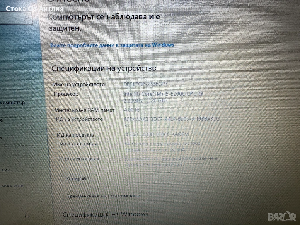 Лаптоп - DELL 3550, Intel core i5 5200U , RAM 4GB DDR3, SSD 256GB / L3 → Обява 53531881