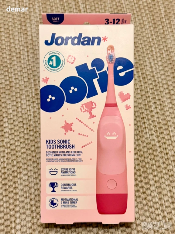 Детска четка за зъби Jordan OOTIE Sonic 3-12 години, 2 глави, сензор за натиск, зелена/розова