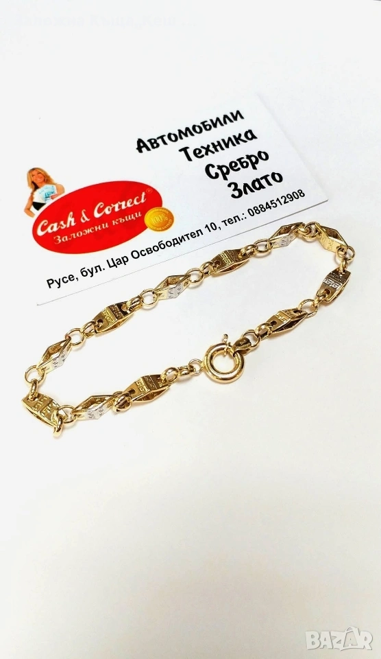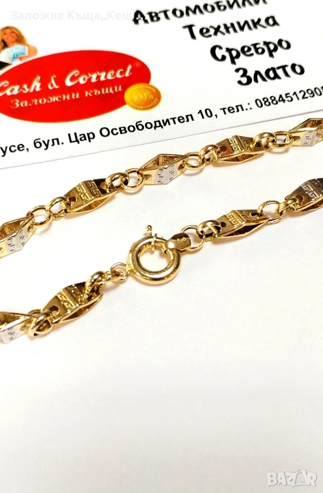 Златна гривна 14К.Тегло 4.18 гр.Дължина 22 см.Цена 376 €. → Обява 53531896