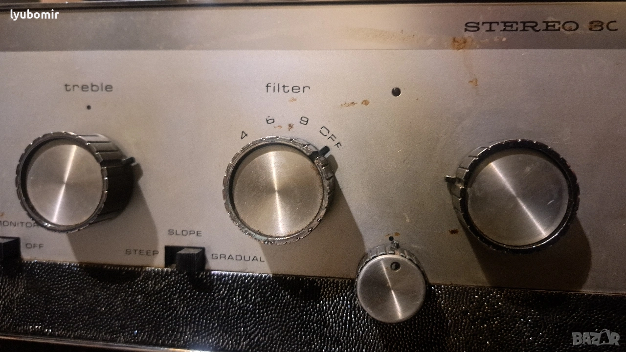 Каквото и да се каже за звука на този усилвател, ще е малко. Сега всеки пише, трудно намираем, уникален и прочие, все клишета, тук просто не работят, няма как да се охарактеризира.Сменени електролити.Оригинални крайни и всичко друго.Копчето за включване е игнорирано,то е вградено при потонциометъра за усилване.