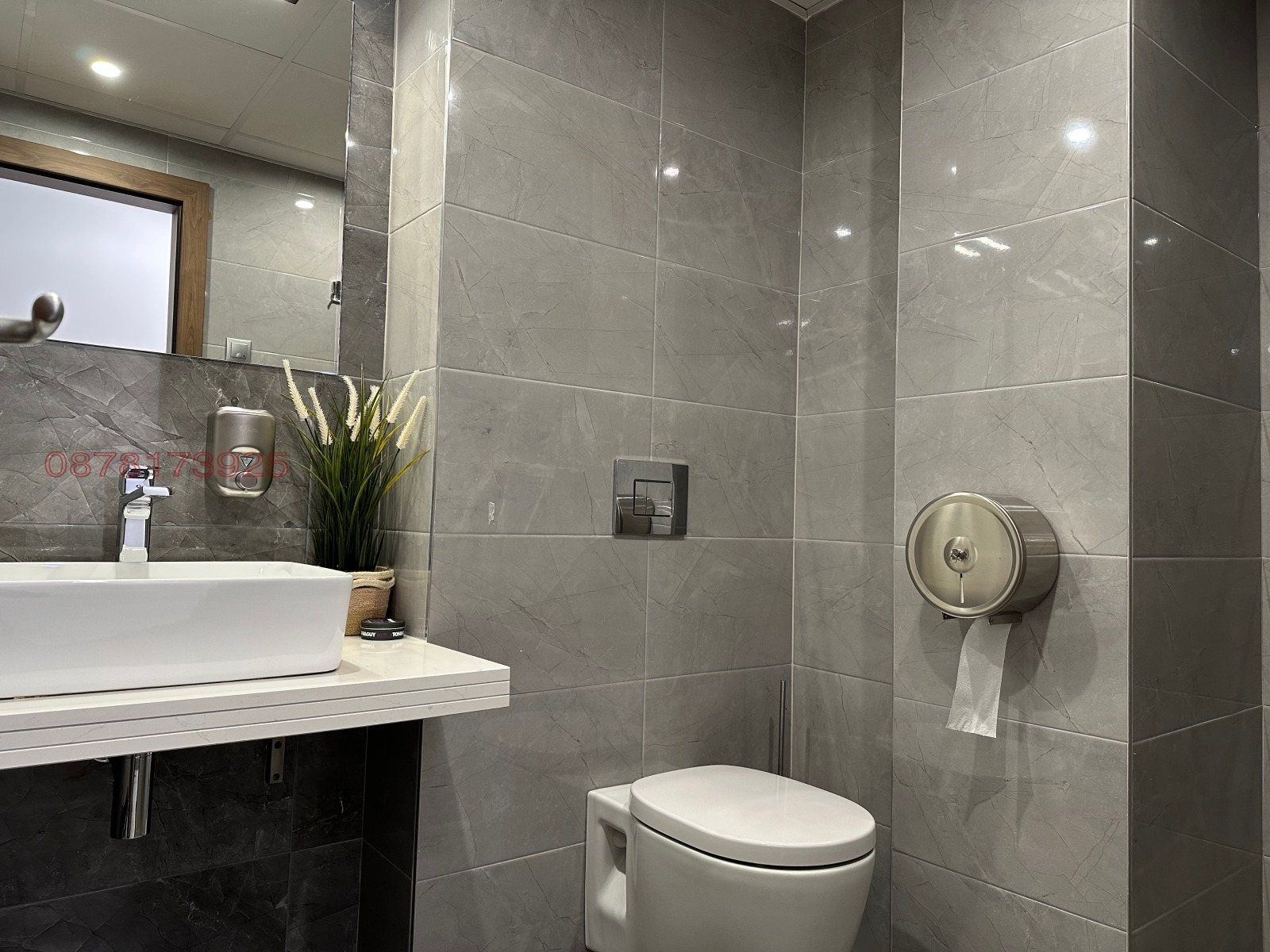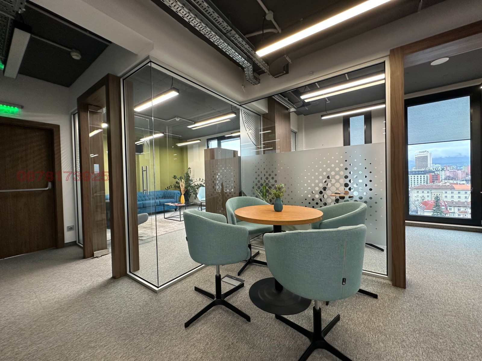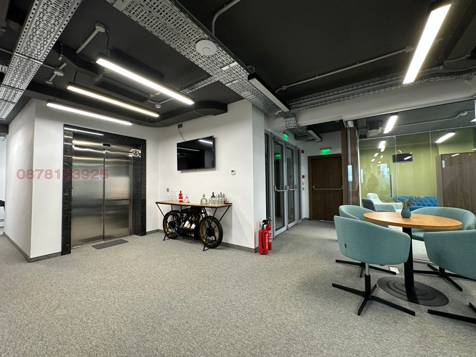 Офисът е самостоятелен на етажа и се състои от кабинет, заседателна зала и пространство с 6 работни места, като има възможност да се направи вътрешното разпределение на броя и вида работни места, в зависимост от нуждите на наемателя.