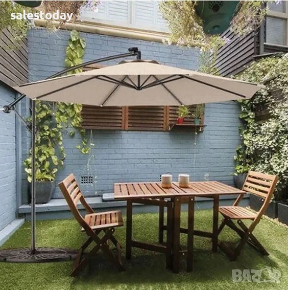 Градински чадър камбана – бежов, Ø3 м, снимка 1 - Градински мебели, декорация  - 53532042 Градински чадър камбана – бежов, Ø3 м, снимка 2 - Градински мебели, декорация  - 53532042 Градински чадър камбана – бежов, Ø3 м, снимка 3 - Градински мебели, декорация  - 53532042 Градински чадър камбана – бежов, Ø3 м, снимка 4 - Градински мебели, декорация  - 53532042 1/4