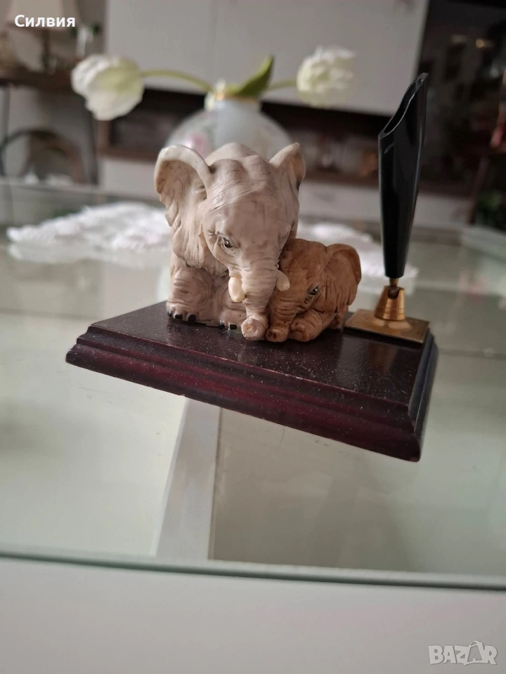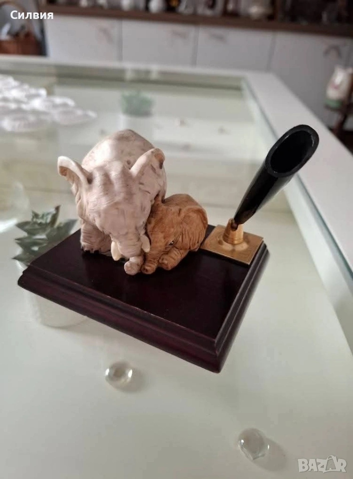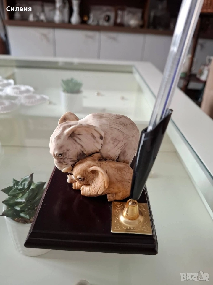 🖋️ Елегантен Настолен Държач за Химикал с Фигури на Слончета