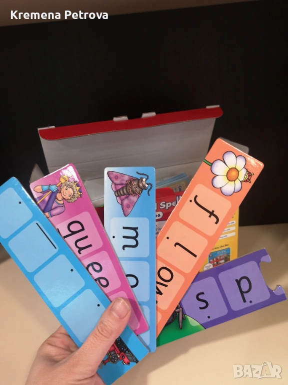 Мъникът трябва да постави буквичките на правилните места, а след това да прочете думичките, които се образуват.
